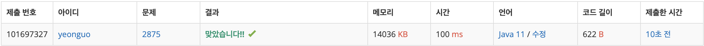 for(i = 0; i <= K; i++) { 연산식 }연산식을 어떻게 구성할지 생각해보자. 남은 여학생을 2로 나누면 가능한 여학생 그룹이 몇 개인지 나오고, 남학생은 1명만 있어도 된다.